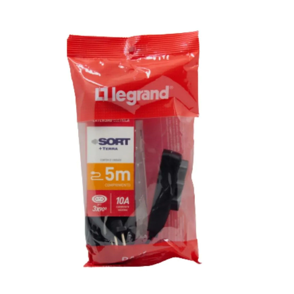 EXTENSAO PP 3X0,75 3 TOMADA 2PT 10A 5MT PRETA LEGRAND DN1787